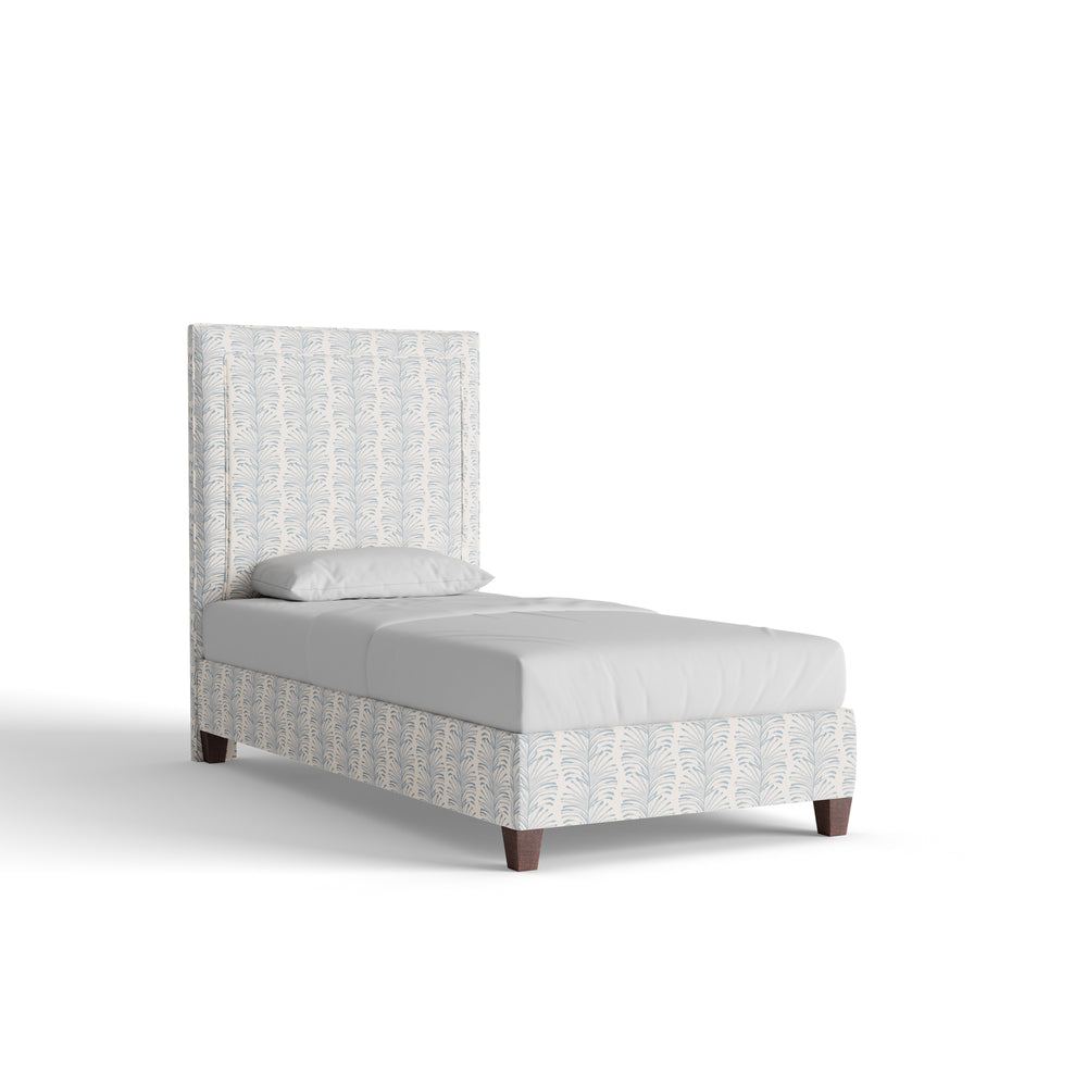 The Delaney Bed features a mid-rise silhouette with clean lines and quiet structure. Shown here in our Emma Sky printed linen fabric, it’s a natural fit for interiors with a tailored, coastal sensibility. Details matter—choose your size, welt, and base to make it your own.