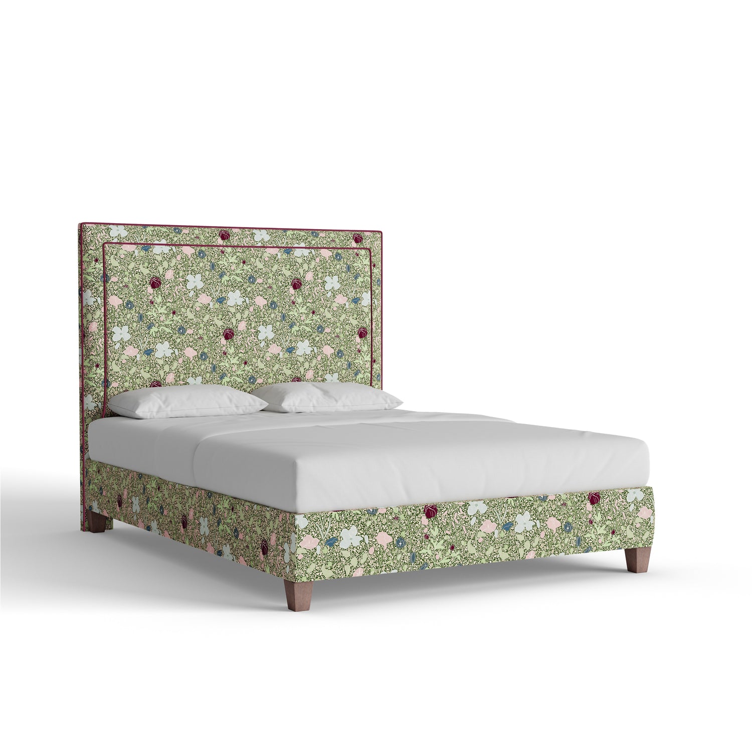 The Delaney Bed features a mid-rise silhouette with clean lines and quiet structure. Shown here in our Matilda printed linen fabric, it’s a statement piece that anchors the room with rich color and bold pattern. Details matter—choose your size, welt, and base to make it your own.