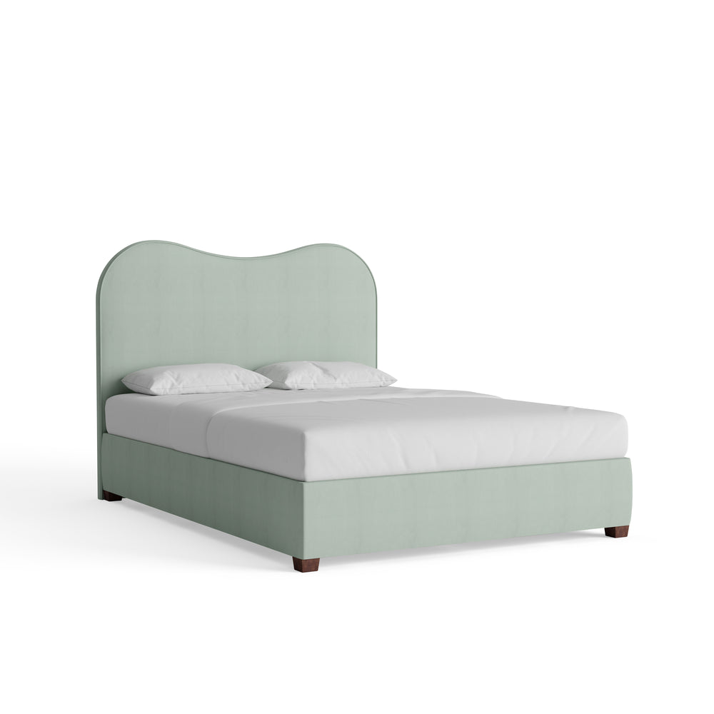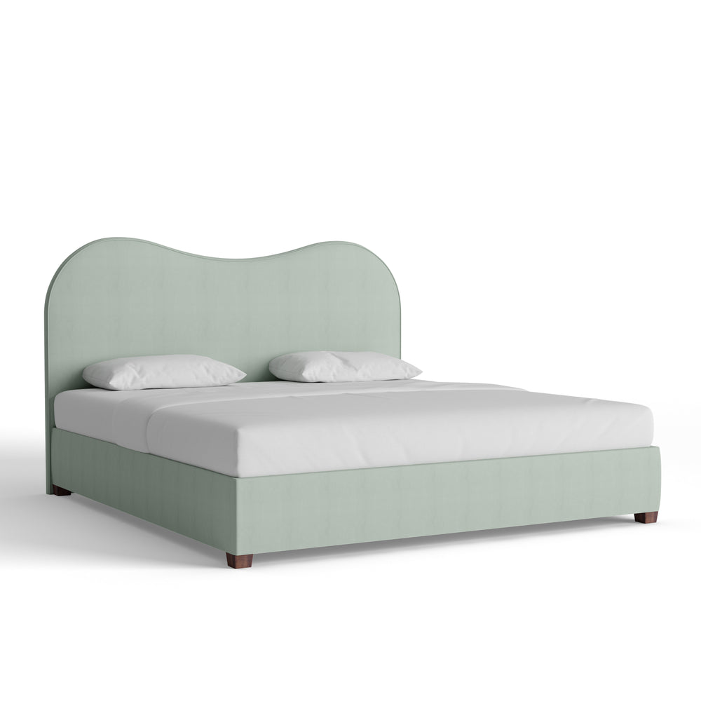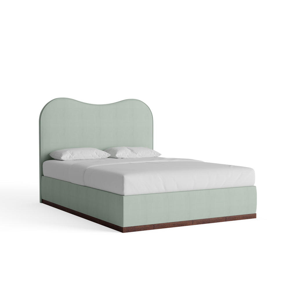 The Hudson Bed features a sculptural silhouette with a relaxed, elegant curve. Shown here in our Sage cotton fabric, its calming color and graceful shape set the tone for a tranquil space. Details matter—choose your size, welt, and base to make it your own.