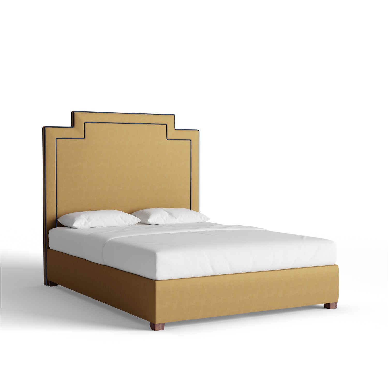 Minimal, but with presence. Our James Bed has a tailored, squared silhouette that complements a range of styles. Shown here in our Camel velvet fabric, its rich color and clean lines ground the room in quiet sophistication. Details matter—choose your size, welt, and base to make it your own.