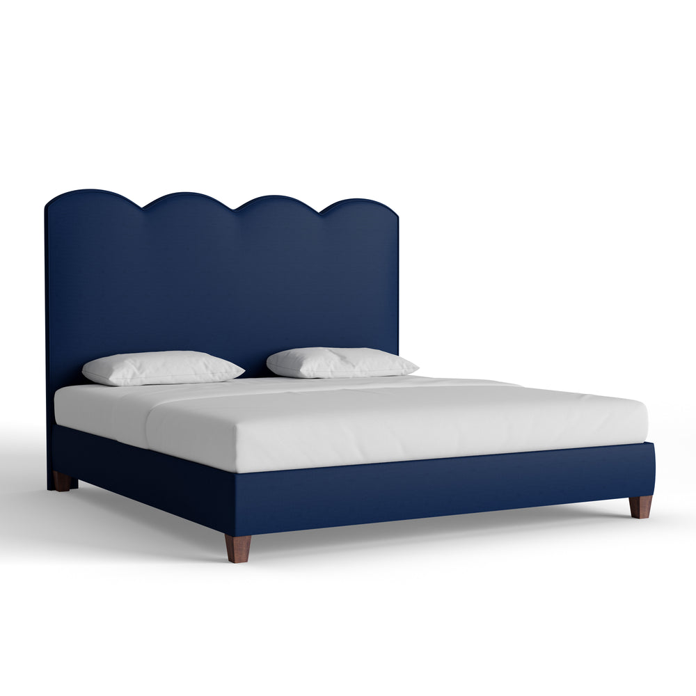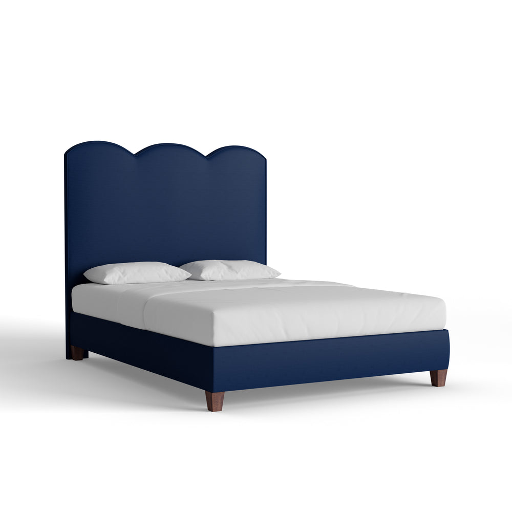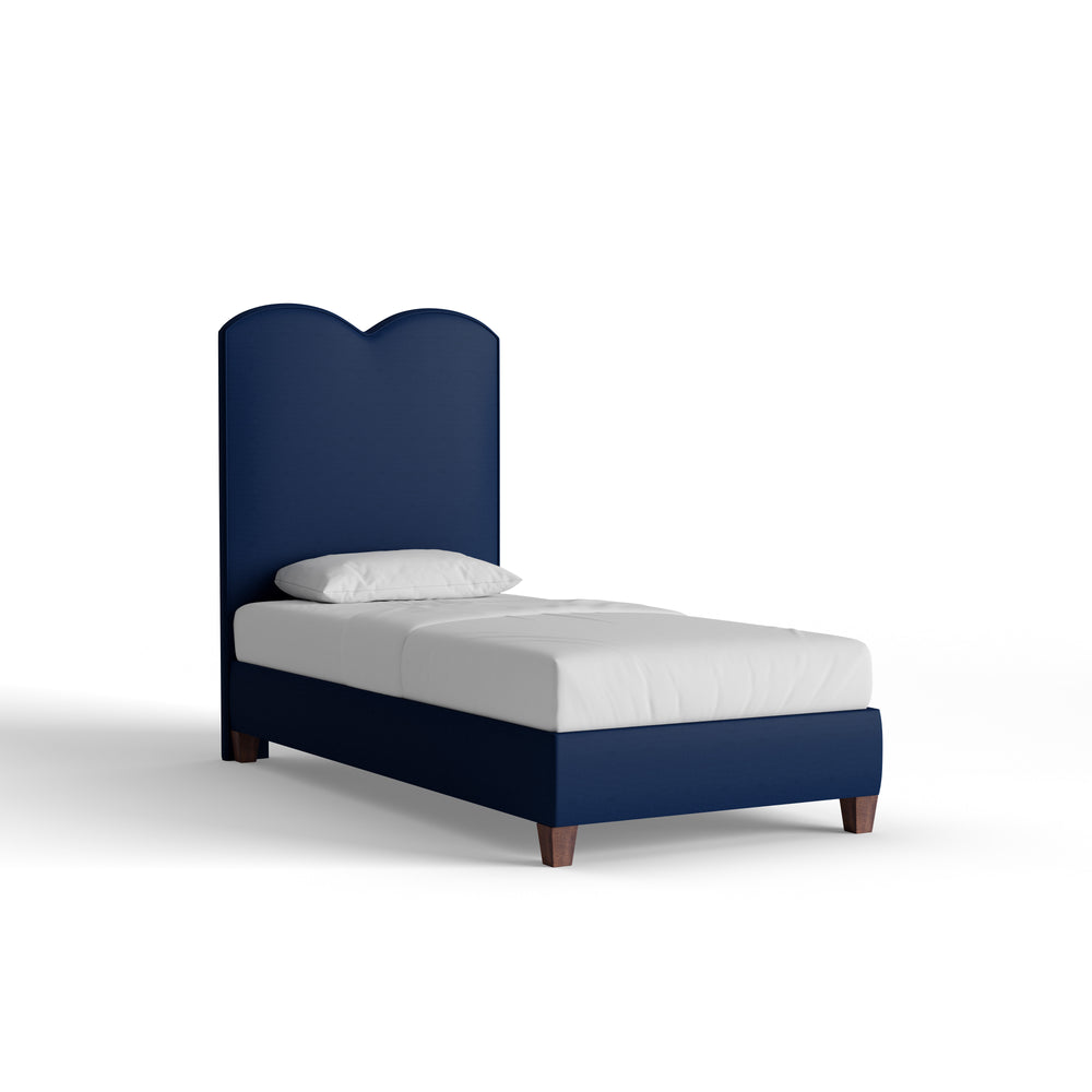 The Theodora Bed features a scalloped silhouette that strikes the perfect balance between whimsy and sophistication. Shown here in our Midnight cotton fabric, it adds personality to any space with its charming shape and fresh pop of color. Details matter—choose your size, welt, and base to make it your own.