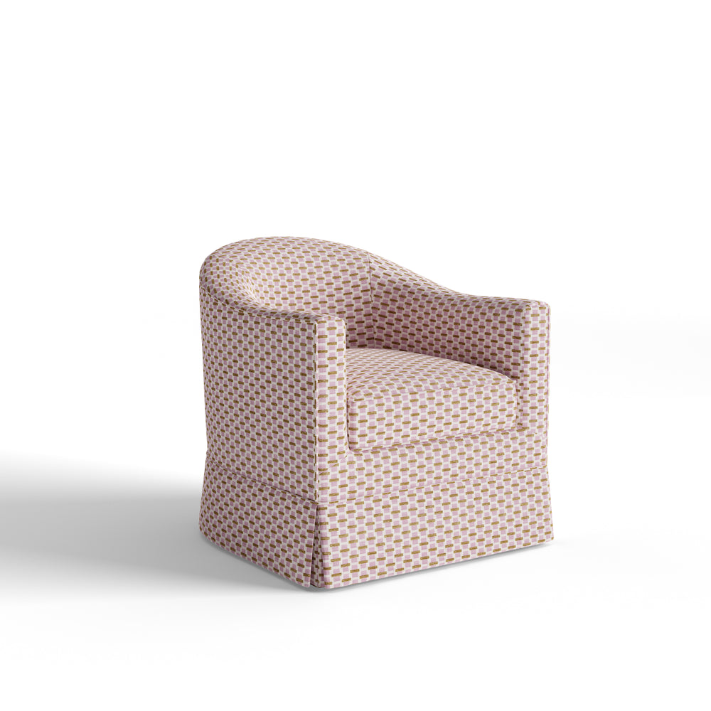 Graceful lines meet timeless appeal. The Adeline Chair features a curved silhouette that blends comfort with effortless sophistication. Shown here in our Willow Orchid chenille jacquard fabric, its geometric pattern and clean lines make this piece a sophisticated standout. Details matter—choose your welt and base to make it your own.