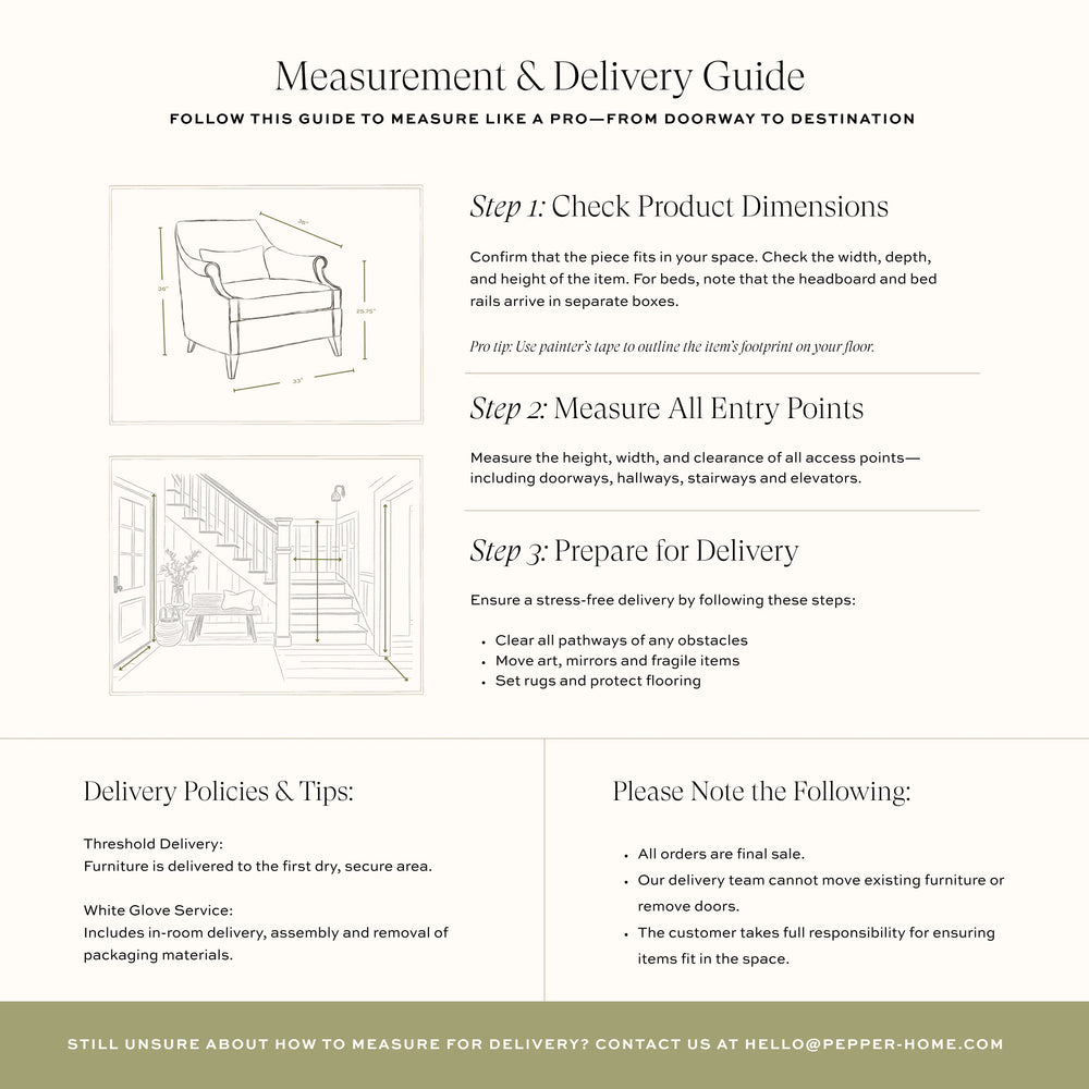• As our furniture is custom and made-to-order, it is FINAL SALE (see full Return Policy)