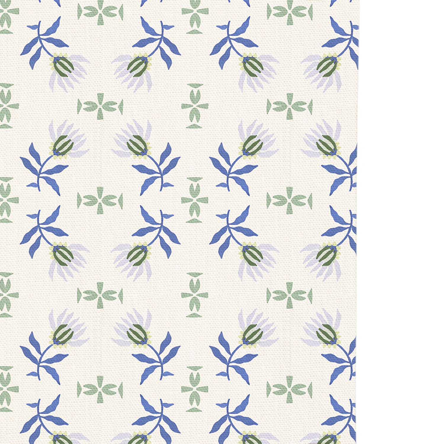 Melvin G’s signature cut-paper collages take on a delicate, floral form in Lee. The mirrored repetition of the motif creates a sense of balance and harmony, while soft greens and blues lend a fresh, tranquil feel to this thoughtfully composed design.