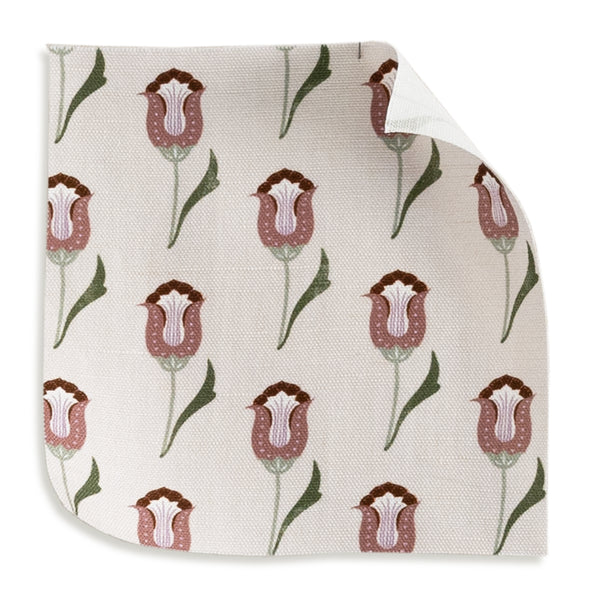 Delicate yet structured, Annabelle Orchid features a repeating tulip motif that feels both classic and fresh. Rendered in soft pink and green, this versatile design brings a timeless elegance to any space.
