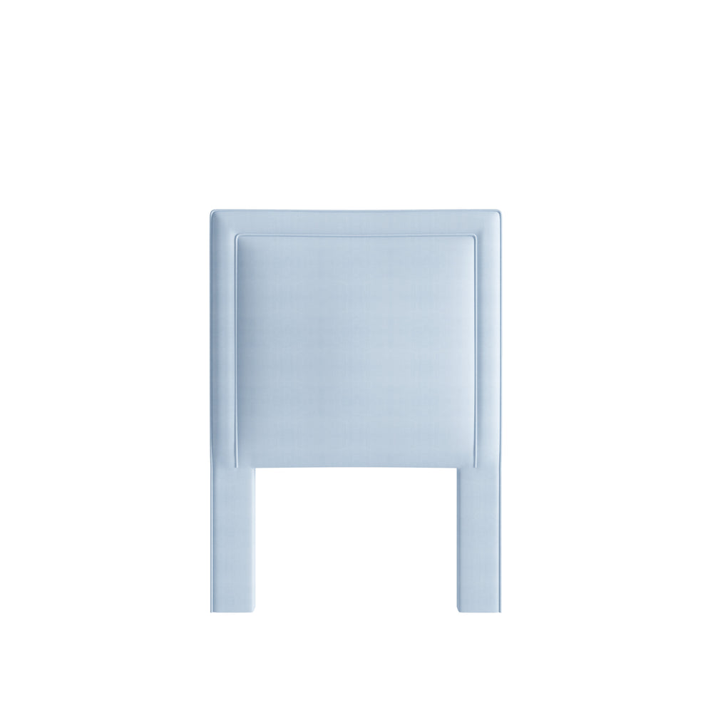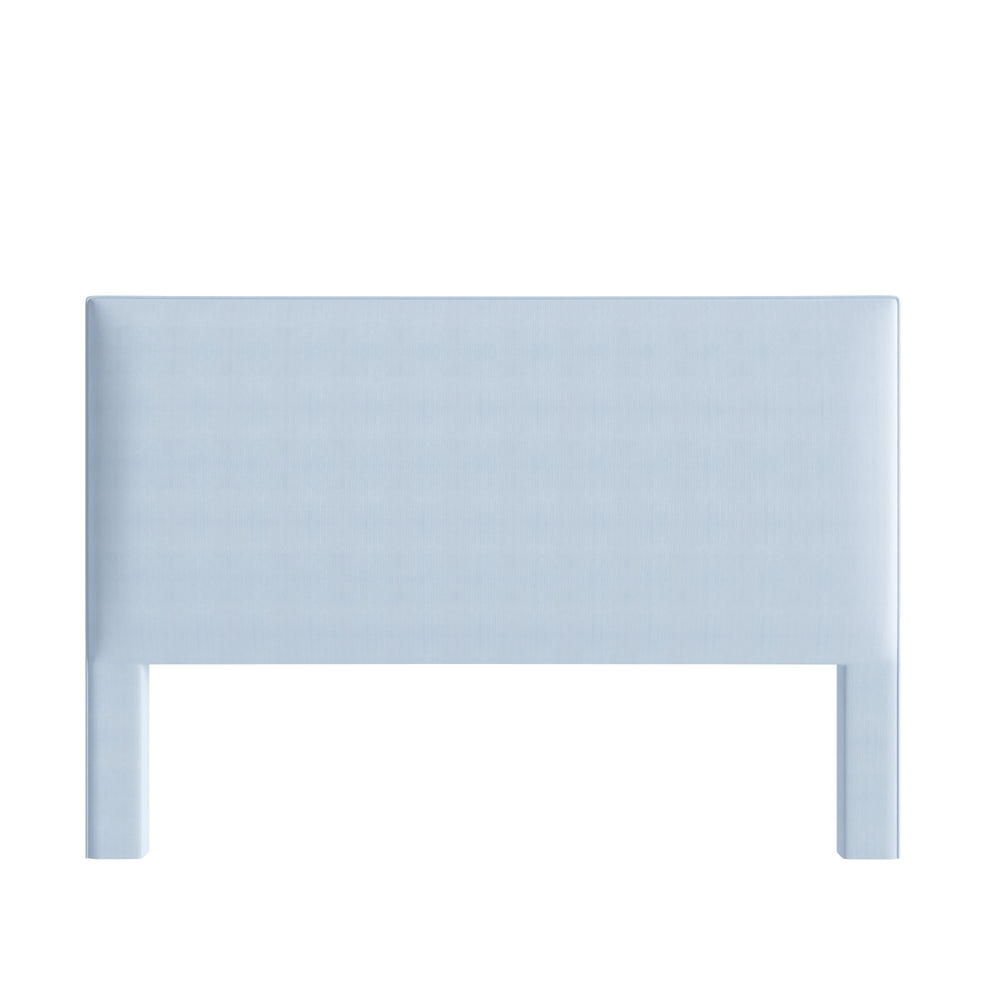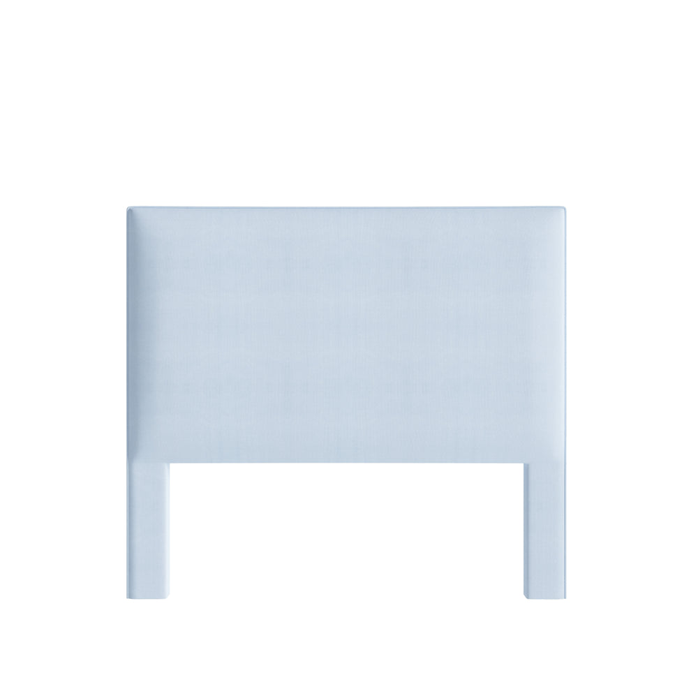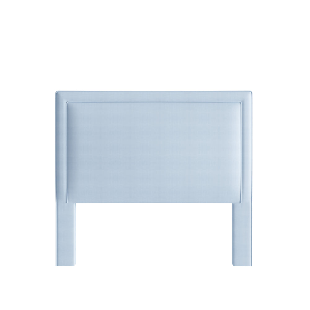 The Delaney Headboard features a mid-rise silhouette with clean lines and quiet structure. Shown here in our Sky velvet fabric, it adds the perfect pop of color without overpowering the room. Details matter—choose your size and welt to make it your own.