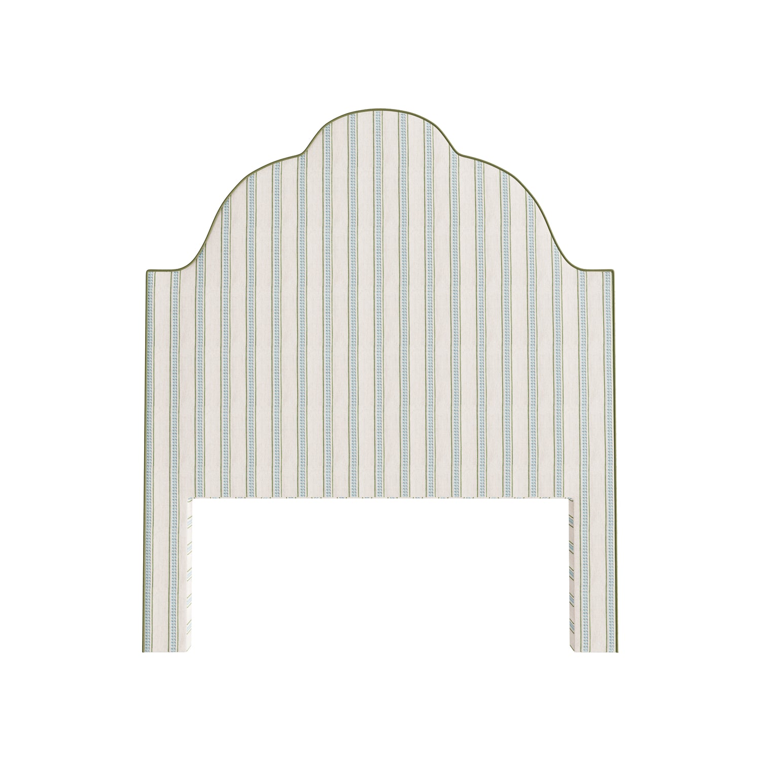 Traditional, with a twist. The Regina Headboard features an arched silhouette defined by graceful curves and a tailored finish. Shown here in our Margot Fern embroidered fabric, its delicate pattern and elegant shape give the piece a quietly sophisticated feel. Details matter—choose your size and welt to make it your own.