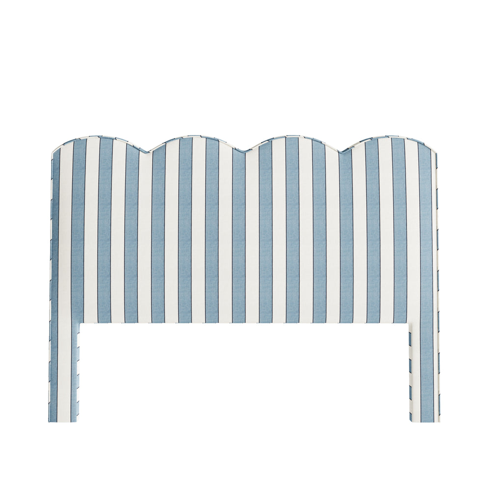 The Theodora Headboard features a scalloped silhouette that strikes the perfect balance between whimsy and sophistication. Shown here in our Florence Harbor printed linen fabric, the classic pattern and standout shape pair effortlessly to create a piece that feels timeless yet unique. Details matter—choose your size and welt to make it your own.
