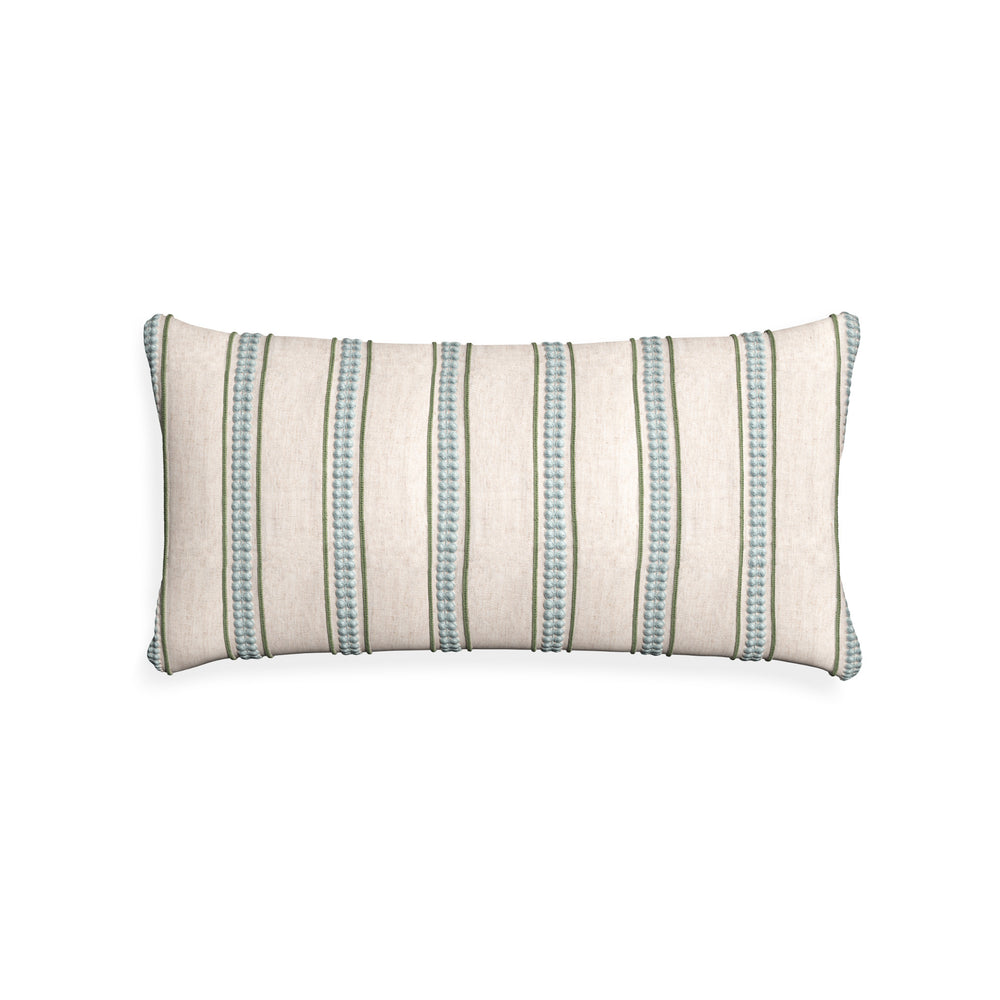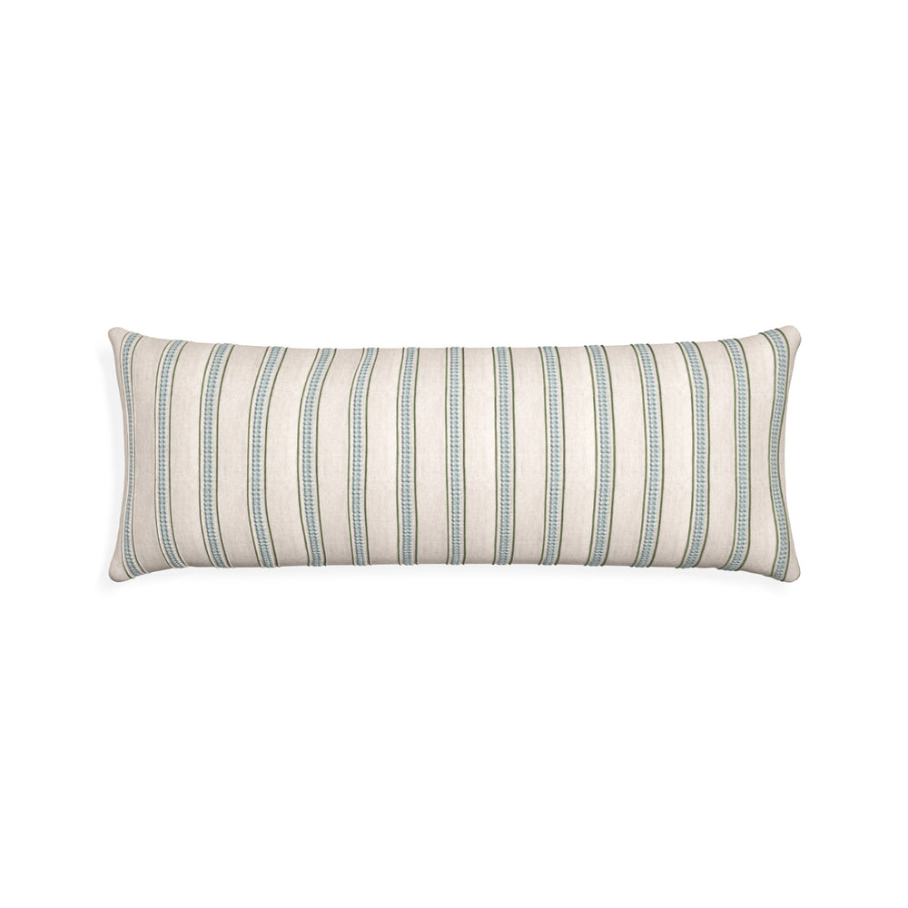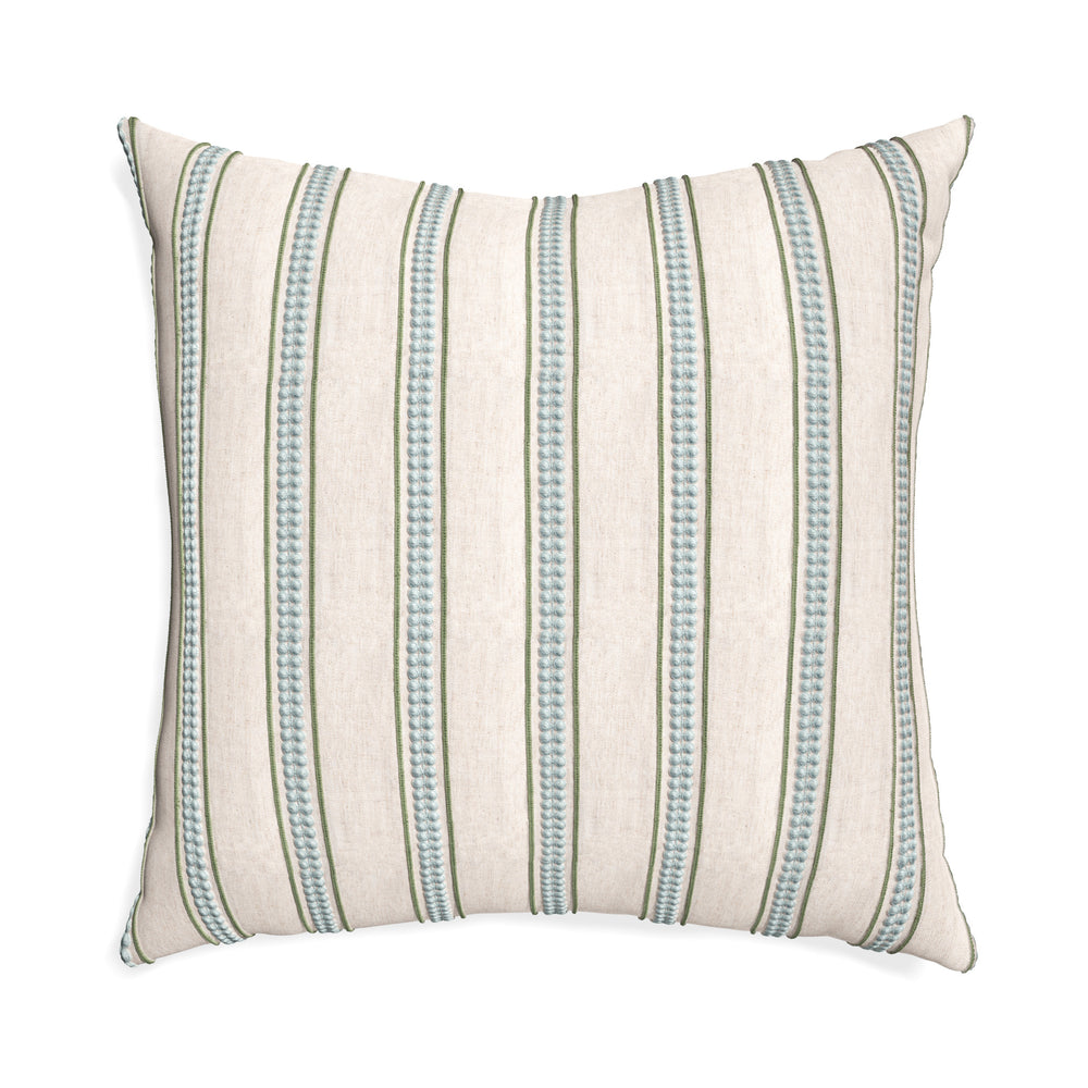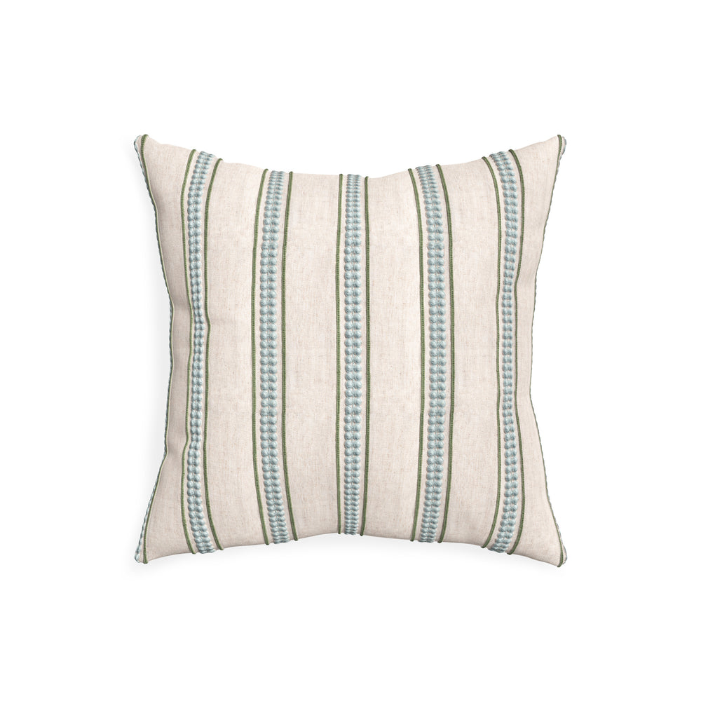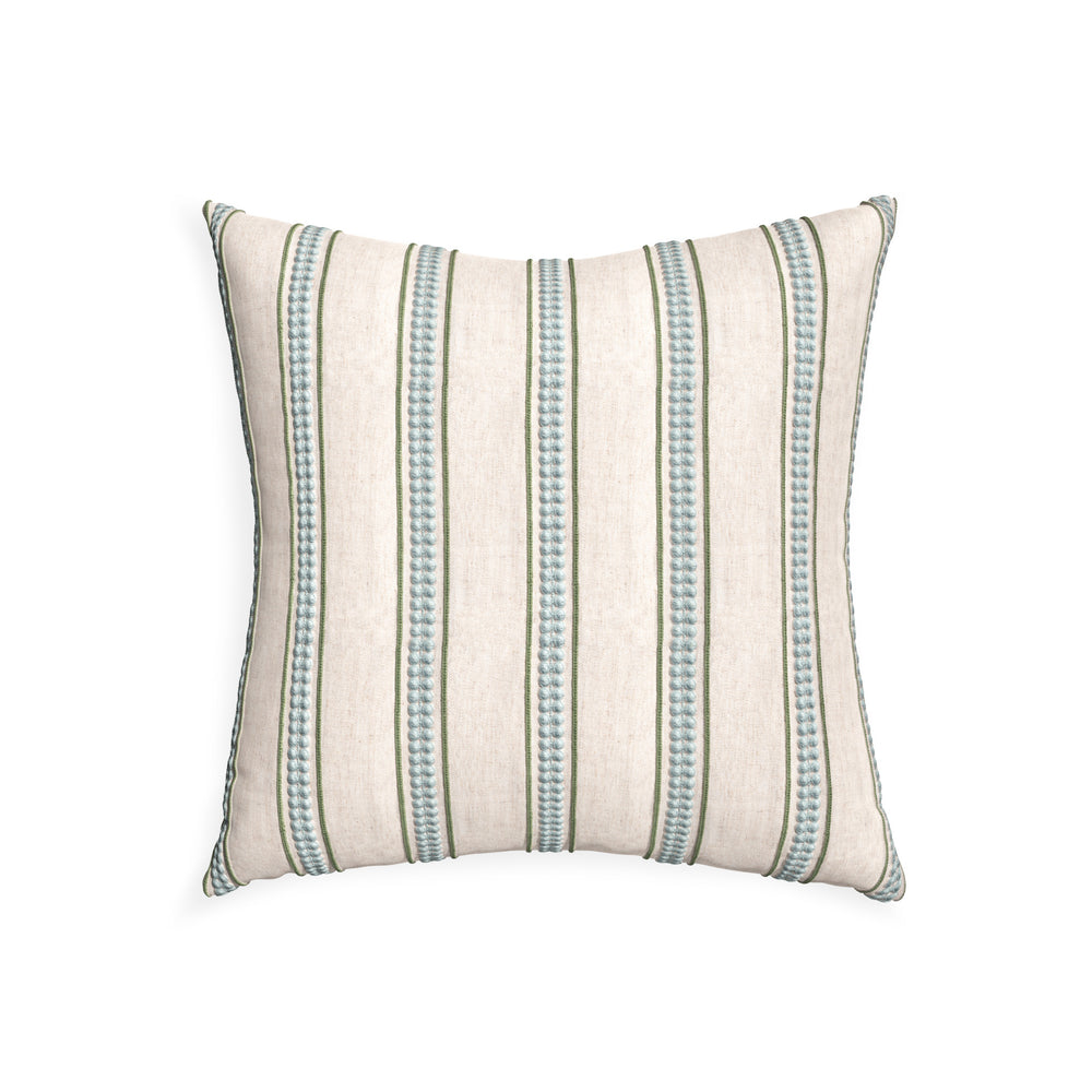 Margot Fern brings a fresh perspective to the classic stripe with intricate embroidery in soft green and blue tones. The stitched details add depth and texture, while the natural linen-blend ground enhances its organic elegance. Timeless yet distinctive, this design offers a perfect balance of structure and artistry.