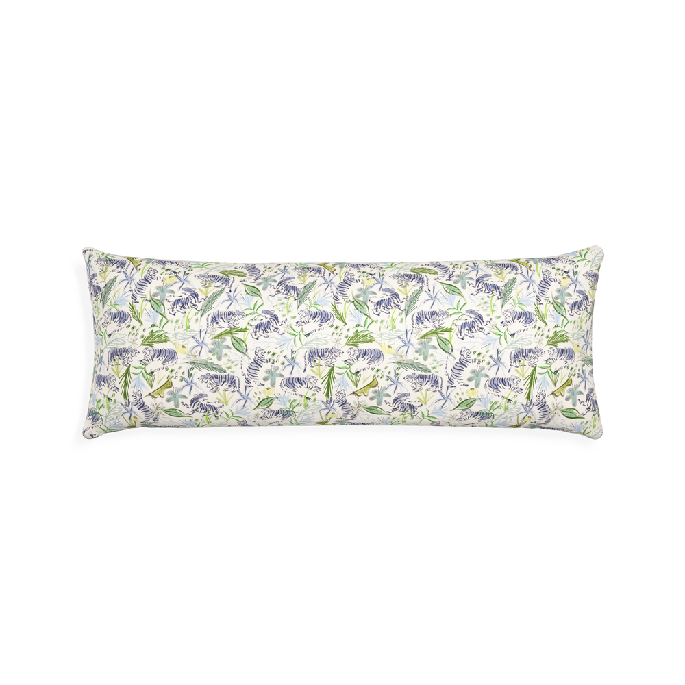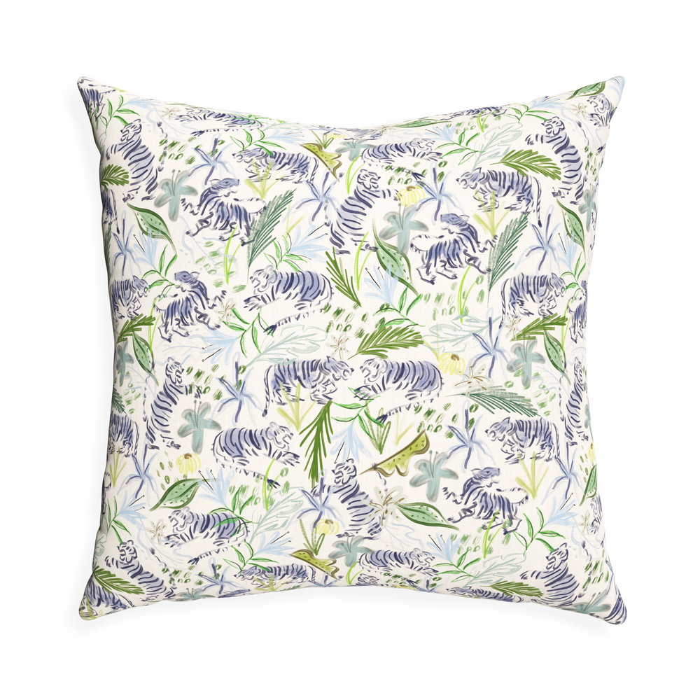 Frida Green comes to life in a palette of cool blues and lush greens, where playful tigers roam through a painterly landscape of fronds and florals. Inspired by the vibrant wallpaper that adorned Kelsey’s childhood home, this intricate design is rich with movement, depth, and timeless charm.