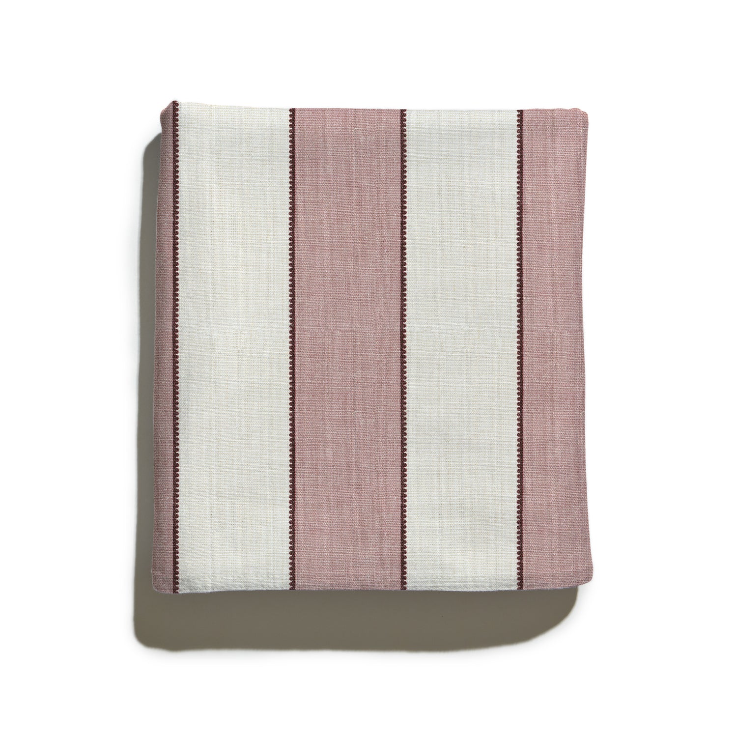 A bold take on a timeless stripe, Florence Rosewood pairs crisp lines with a delicate scalloped border for a hint of playfulness. Woven from linen, its natural ground adds warmth and depth, making the rich, rosy hue feel effortlessly elevated.